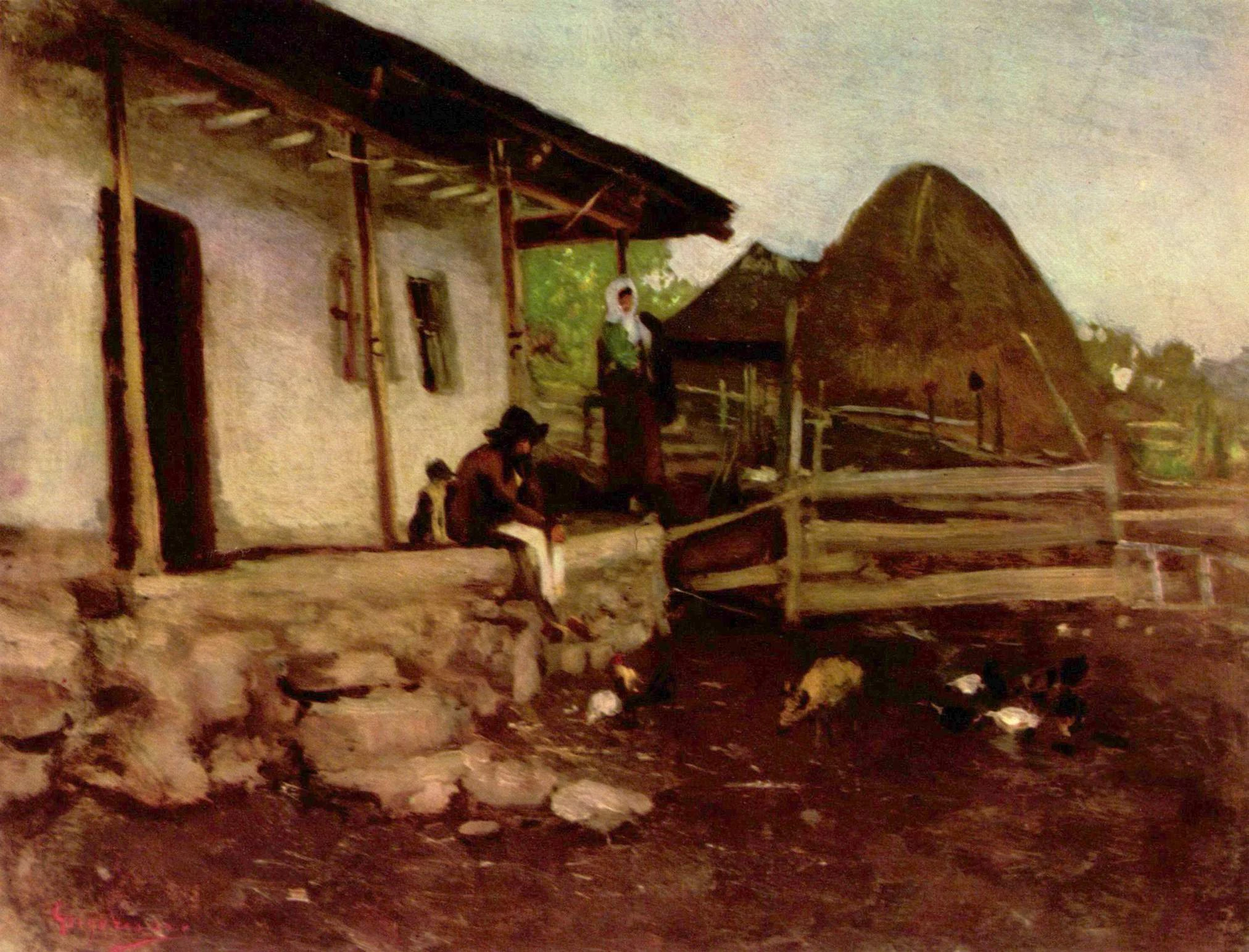 Curte ţărănească, pictată de Nicolae Grigorescu, înfăţişând o curte tipică a ţăranilor din sec. al XIX-lea